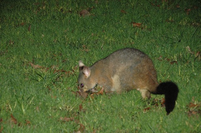 On repart ensuite pour le centre ville. On a le droit à une visite guidée by night jusqu'au jardin public de cook's cottage pour aller voir les opposums. Ce petit animal, parent du koala et du kangourou n'est actif que la nuit et a la particularité d'utiliser sa queue pour se suspendre. Cet endroit est connu pour en abriter beaucoup et c'est facilement que l'on peut les voir et s'en approcher. Peu farouche, il y en a un qui vient voir si on n'a pas de la nourriture dans nos mains. On fini cette magnifique soirée par un arrêt devant l'imposante Cathédrale Saint Patrick, joliment éclairée.