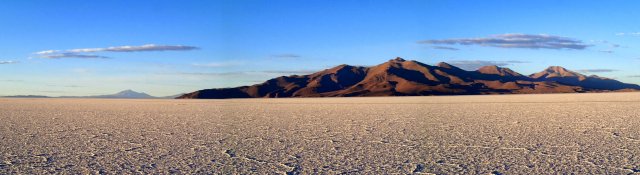 De retour au 4x4 on mange avec Lino un bon poulet, des pâtes, de la salade et des bananes frites, ça nous requinque! On emprunte ensuite un petit chemin pour aller voir des momies vieilles de 1300 ans. Elles ont été conservées grâce à une pommade faite avec des coques de quinoa. Il y a dans cette grotte-cimetière 2 femmes, 2 bébés et 3 hommes. Ils tiennent tous une position fœtal pour pouvoir se réincarner (croyance des incas). Nous quittons le volcan et nous arrêtons en plein milieu du désert pour voir un hôtel de sel construit ici, seul au milieu de nul part. Un peu plus loin nous observons les “yeux” de sel, des trous dans la couche de sel, fine à cet endroit, dans lesquels on voit l'eau buller. Elle arrive directement de la montagne au bord du salar et est chargée en minéraux dont du lithium. On apprend que le salar représente plus de la moitié des réserves en lithium de la planète. Une richesse, donc, très importante pour le Bolivie. Bien sur le sel du salar est aussi exploité pour de la production de sel alimentaire. On découvre ensuite des centaines de petites pyramides de sels, résultat du travail des habitants du salar venu récupérer du sel.