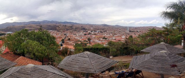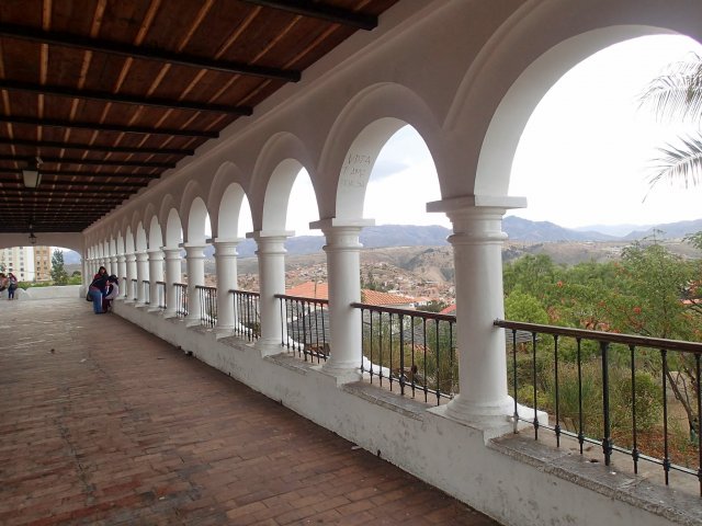 On déambule ensuite jusqu'à la grande place centrale très fleurie pour chercher de quoi manger. On arrive au marché et on achète des sandwiches, des empenadas (feuilletés) et du fromage de chèvre. On se fait un picnic très sympa dans le parc vu le matin. Nous voilà maintenant en train de grimper sur les hauteurs de la ville, les ruelles sont très mignonnes et toujours bien arborées. On arrive au Mirador Recolta duquel la vue sur la ville est jolie, on se rend bien compte de la grandeur de Sucre! On flâne avant d'aller manger au marché, c'est tellement bon (et complet), pas cher et surtout typique.
