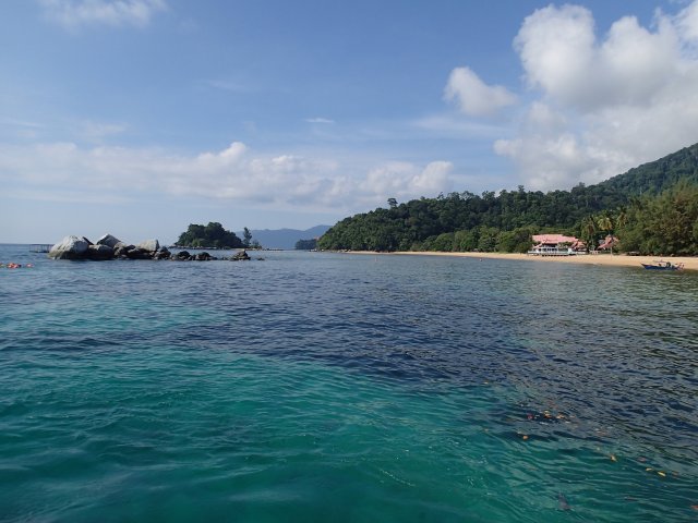 Le 29 mai, nous voulons aller à Monkey Bay en bateau taxi mais cela coûte bien trop cher au vu de la distance. On envisage d'y aller à pieds par le sentier de la jungle mais une montée de 200m, boueuse et glissante a eu raison de notre motivation. On fera finalement un peu de snorkeling à chaque extrémité de la plage et réservons un tour en bateau pour le lendemain. Dans l'eau nous avons vu un grand poisson ballon, 1 bébé requin et 2 tortues... c'est un paradis pour le snork la Malaisie !