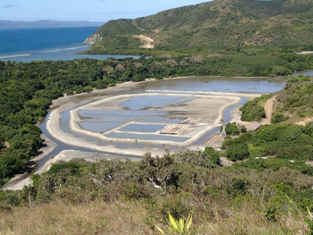 Nous arrivons à Poingam, pointe nord de la grande terre, et installons notre tente face à la mer dans un charmant gîte camping qui nous avait été conseillé par une locale. Après avoir goûté à l'eau de la mer, plutôt bonne, nous empruntons les sentiers alentours pour explorer le coin. Après avoir traversé un dôme de quartz, un bois de Niaoulis (arbre très présent en NC), la vallée des chevaux sauvages, on découvre une vue imprenable sur la baie, son lagon, la barrière de corail et les marais salant de Kô.