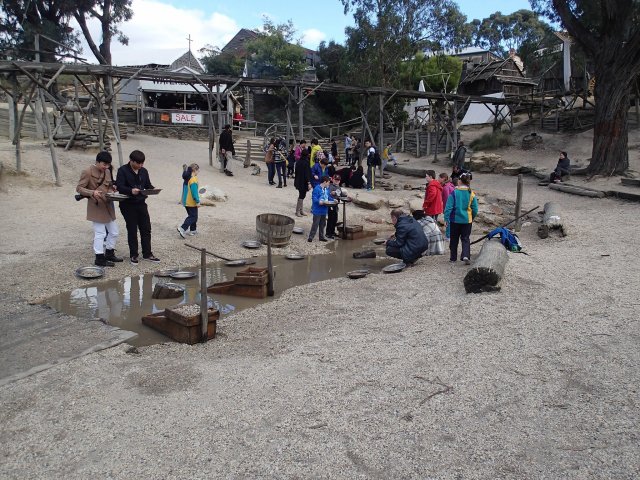 Il ne reste presque plus rien des milliers d'immigrants qui sont venus retourner la terre dans l'espoir de devenir riche, à part un parc historique où a été reconstitué un village de l'époque et une mine d'or avec toutes les installations (la batterie, la fonderie, etc...). Il y a même une rivière où on peut trouver des paillettes d'or en faisant du panning. On s'est pris au jeu et avons trouvé quelques fragments. On n'est pas riche mais avons eu pendant quelques heures la fièvre de l'or.