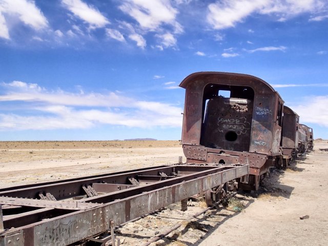 Nous attaquons la journée par le cimetière des locomotives à vapeur. Ce sont des locomotives qui étaient utilisées pour acheminer le minerais extrait des mines au Chili et en Argentine.