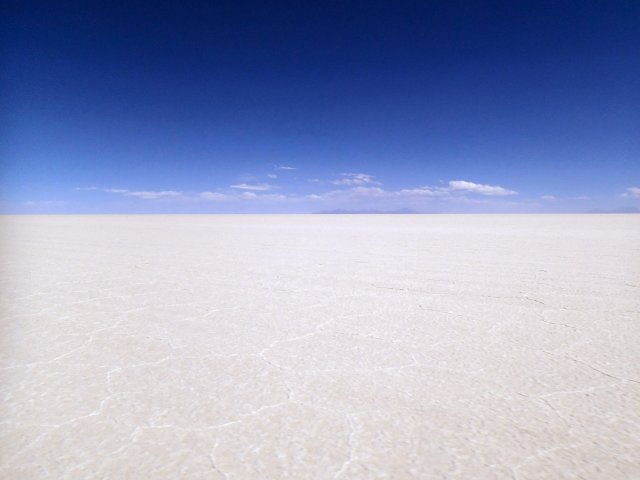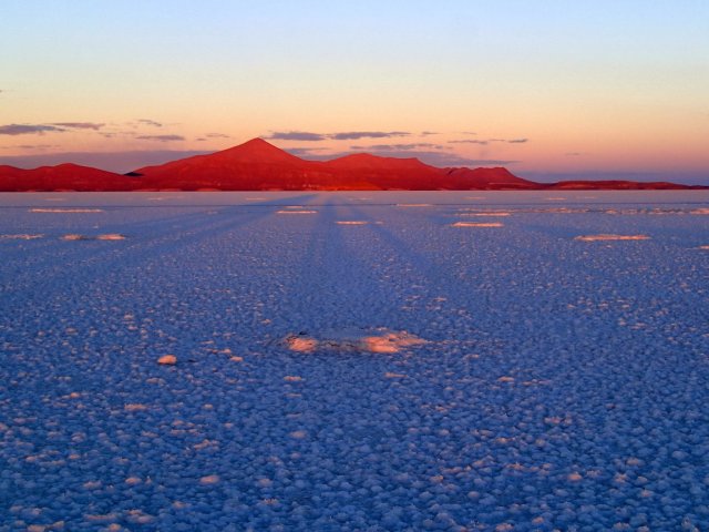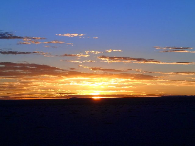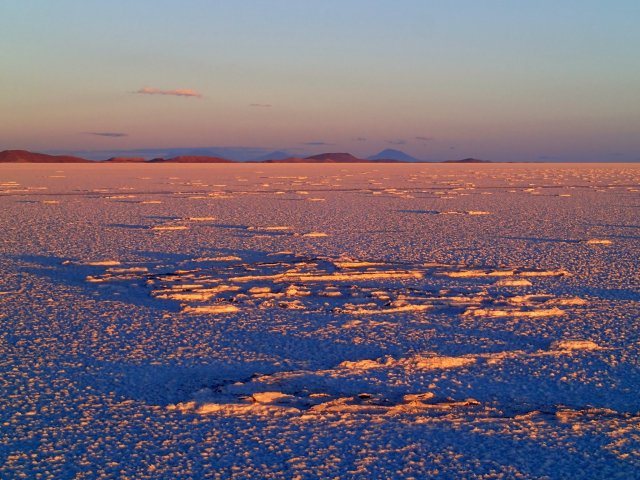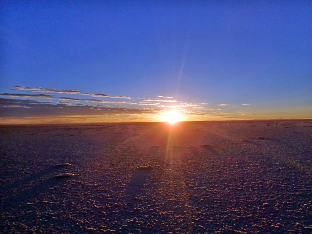 Le 6 octobre, on se lève encore à 4h pour voir le soleil se lever sur le salar d'Uyuni. C'est superbe un levé de soleil comme sur l'océan, sauf que face à nous s'étendent des centaines de km² de sel. Ce salar qui mesure pas moins de 10 582 km2 et qui se trouve à 3700m d'altitude est le plus vaste désert de sel au monde. Il est né de l'assèchement d'un lac préhistorique il y à plus de 10 000 ans. Nous sommes tous les 4 très excités d'être là et nous amusons à poser pour des photos avec des effets d'optiques sympathiques et rigolos...