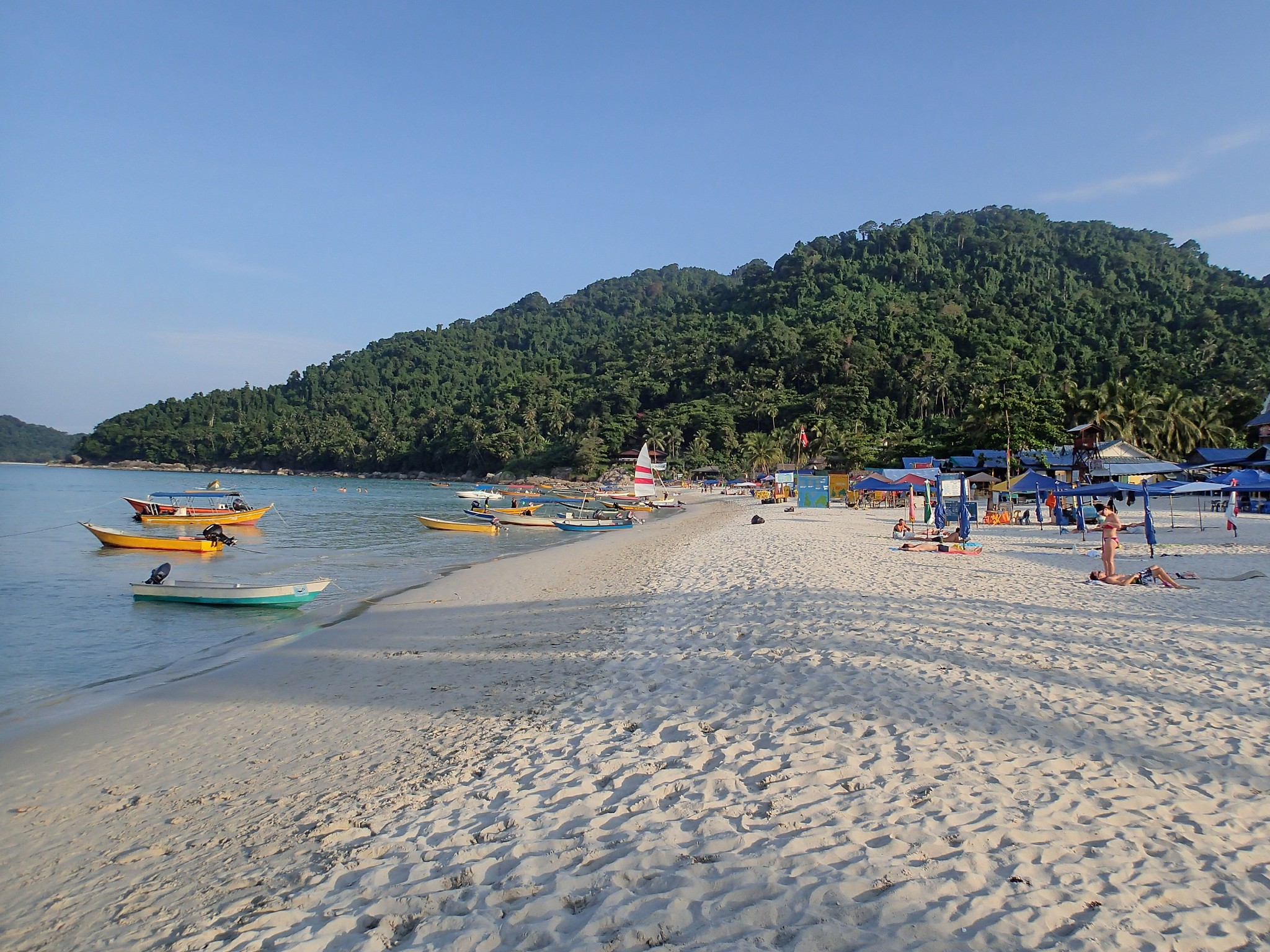 Le 15 mai, 9h nous sommes dans le bus pour Kuala Besut, où nous prendrons le bateau pour les Perhentianes. Et nous voilà de nouveau sur un très belle plage, l'eau est turquoise et l'île à l'air tranquille ! Nous trouvons une chambre assez sommaire mais ici tout est plus cher, et très vite complet alors on verra demain pour changer d'hôtel. On goûte l'eau... elle est bien chaude et magnifique, quel changement après la jungle ! C'est très appréciable.