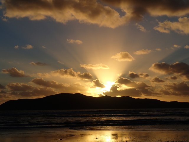 Le lagon de la Nouvelle Calédonie, le plus grand du monde, est inscrit au patrimoine mondial de l'UNESCO. On part dîner ensuite au bout de la plage de l'estuaire de la rivière de Bourail, à quelques kms. On a la chance d'admirer un couché soleil des plus somptueux. Certainement le plus beau du voyage, avec un mélange de rais de lumière et de nuages chargés de couleurs incandescentes.