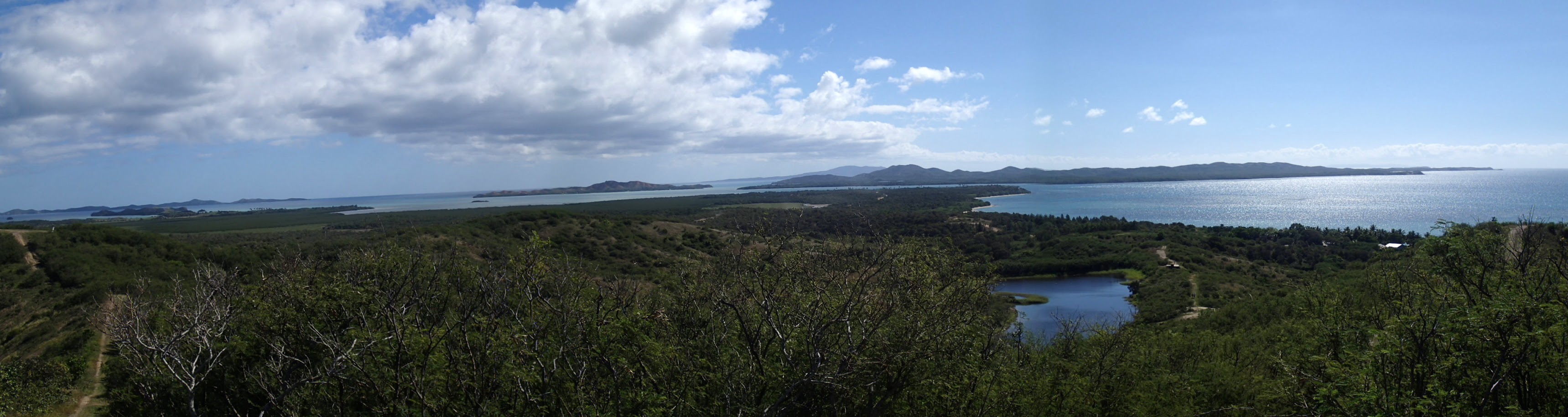 Le 15 août, encore un petit déjeuner face à la mer, c'est vraiment super, on déguste ces moments et nous nous rendons compte de notre chance! On part ensuite pour Boat Pass, le lieu où passent les bateaux et d'où nous découvrons un bel archipel. Nous continuons notre tour des environs et nous nous arrêtons sur le haut d'une colline pour admirer la côte et la baie de Poum, le panorama est très beau et cette nature est si sauvage et luxuriante c'est magnifique!