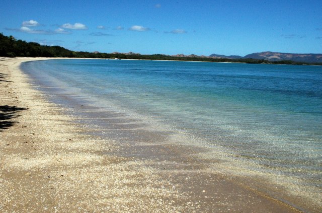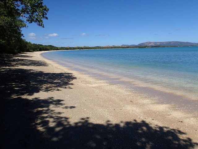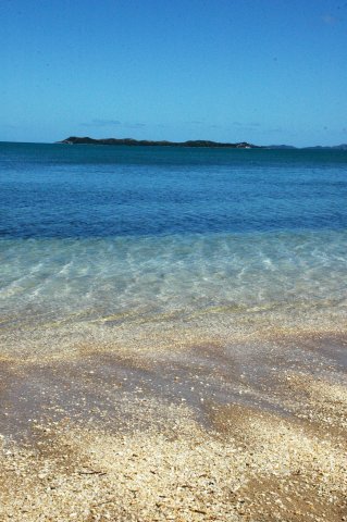 Nous ne sommes au bout de nos découvertes sur les merveilles de la NC... la plage sur laquelle nous nous arrêtons pour déjeuner est une pure merveille. Elle est, pour commencer, peu fréquentée et la couleur de l'eau est incroyable, on peut en plus y observer des îles toutes proches. De retour sur notre plage, enfin, celle du camping, on est allé observer avec nos masques et tuba la vie sous-marine. Elle était ici très maigre car il y avait peu de coraux, mais nous avons vu des grosses étoiles de mer et quelques poissons quand même. Ce soir le ciel est très clair, nous dînons à la lumière de la lune...