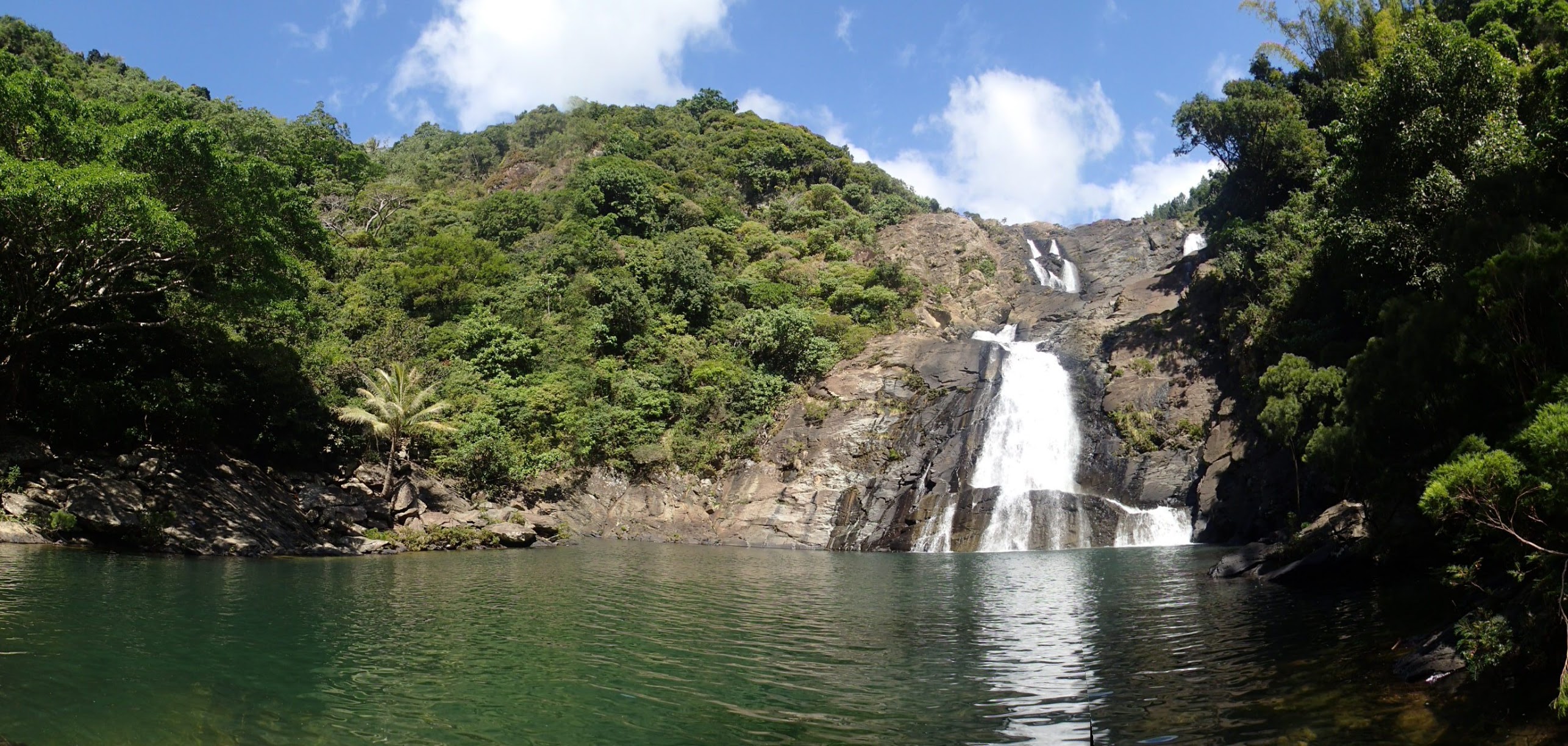 Ceci étant fait nous pouvons attaquer sereinement notre route! Notre premier arrêt nous permet d'aller voir la cascade de Bwo et sa piscine naturelle (un peu fraîche, on y mettra que les pieds!). Ensuite la route longe la mer et nous emmène en haut d'une mine de nickel exploitée depuis plus de 40 ans. Ce décors martien est grandiose et nous plonge dans un monde entre bleu et ocre. Ces roches grattées et creusées nous offrent ce qu'elles ont de plus intime! Après cette belle traversée des terres, somme toute, assez longue nous arrivons à Farino.