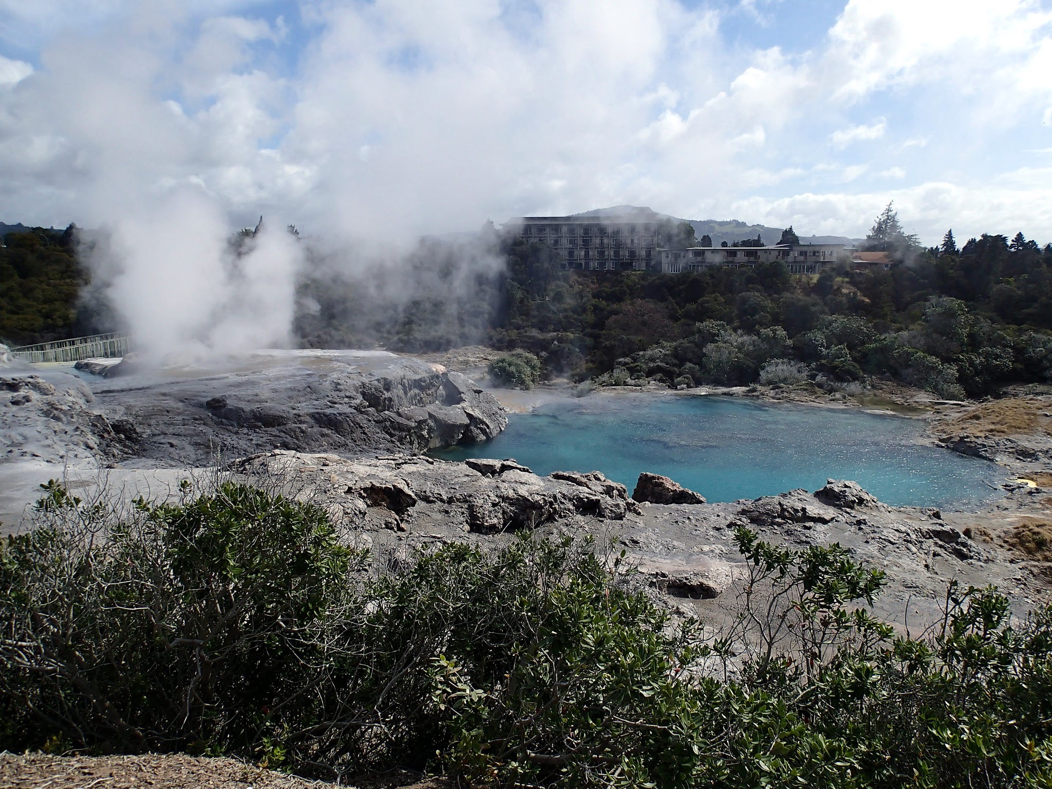 Le 8 septembre nous allons à Te Puia, complexe assez fourni qui permet de voir les formations volcaniques naturelles de la région telles que des geysers et des mares de boue chaude. On découvre au début de notre visite guidée le Geyser de Pohutu, haut de 20m, il expulse de l'eau et de la vapeur deux fois par heure pendant 20 minutes.