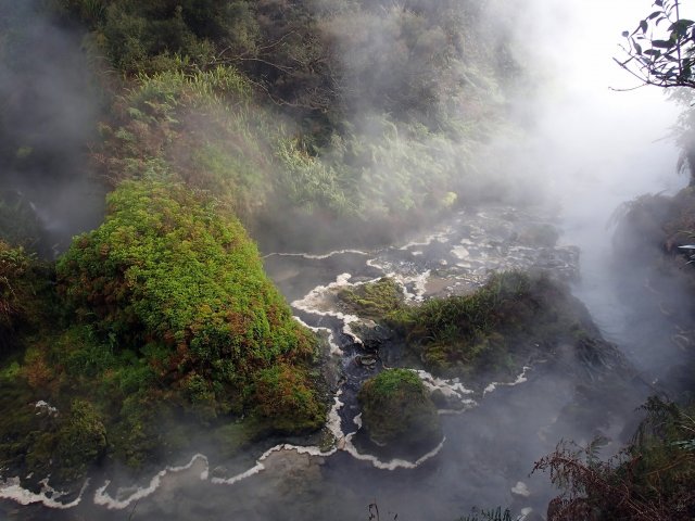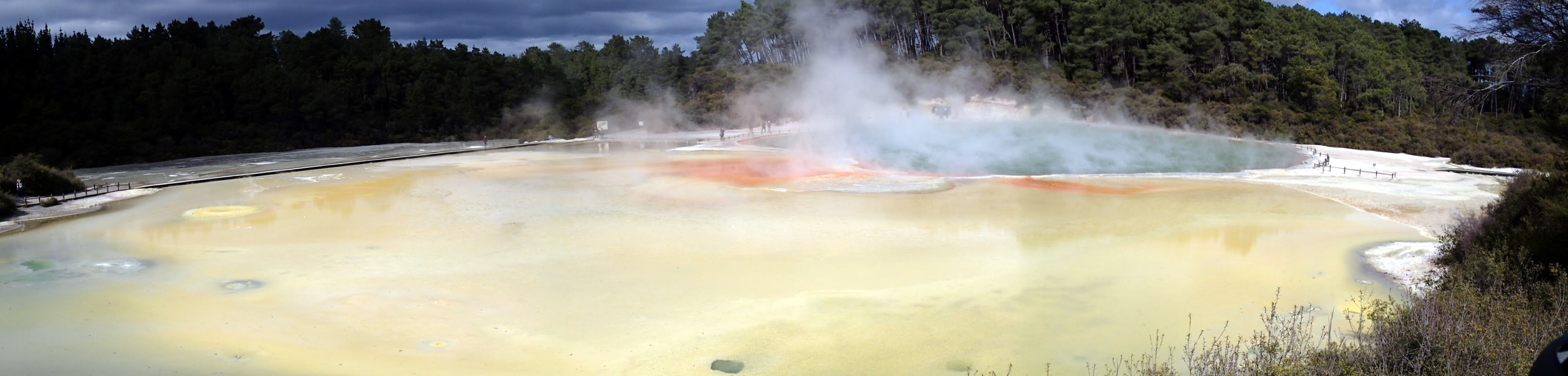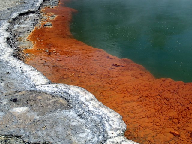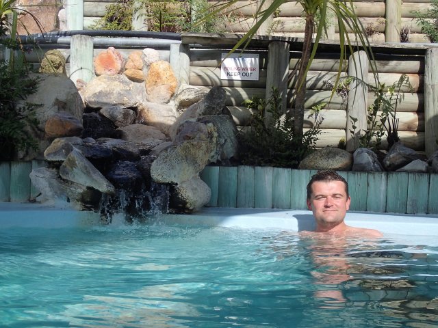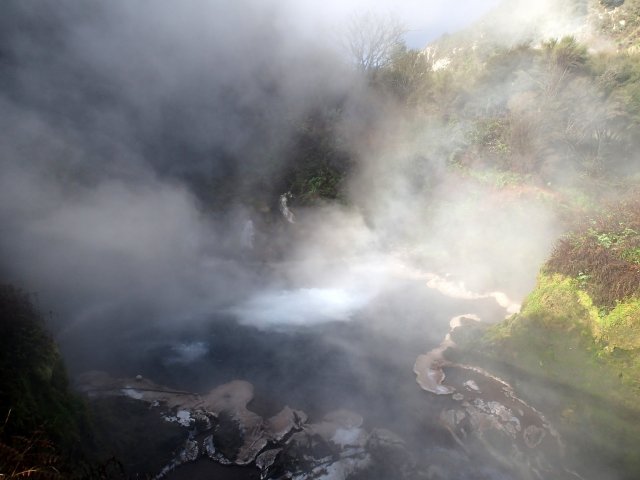 Nous nous baladons ensuite pendant 3h à l'intérieur du parc entre cratères, lacs de couleur jaune, blanc, rouge, des terrasses minérales, des mares de boue et des flaques bouillonnantes. On ressent ici la terre s'exprimer à travers le bruit des bulles qui éclatent et le mouvement des volutes de vapeur. On se rend en seconde partie de journée à Waikite thermal pool, un petit spa dans la nature avec des piscines entre 38-41°C d'eau thermale. On peut même aller voir la source qui est à quelques mètres et qui bouillonne.