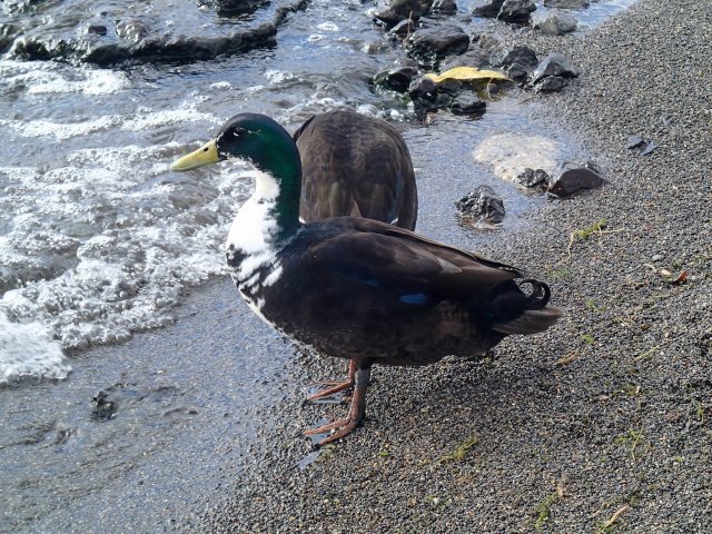 Nous finissons la journée en allant sur la plage de 2 miles beach où l'eau est à 40°C alors que sur le reste du lac, elle est à 10°C. Les canards s'y plaisent.