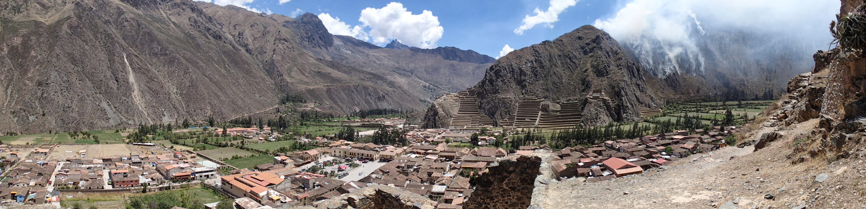 Le 21 septembre, nous avons un trajet de bus de 30 min pour atteindre Ollantaytambo, dernière ville accessible avant le Machu Picchu. Il faut savoir qu'aucune route n'emmène à Aguas Calientes, le village au pied du Machu. On peut seulement l'atteindre en train. On commence donc par réserver le train. On découvre que les tarifs sont très élevés et directement fait pour ponctionner les touristes (comme tout ce qui est lié au Machu). Le prix entre un étranger et un péruvien, même touriste, est 15 fois supérieur! On réalise que voir le Machu Picchu est finalement une part très importante de notre budget « Pérou » mais ça reste incontournable. On débute ensuite la visite d'Ollantaytambo, très belle petite ville dominée par des vestiges Incas dont une grande citadelle.