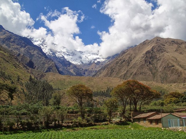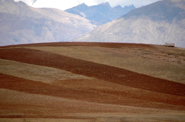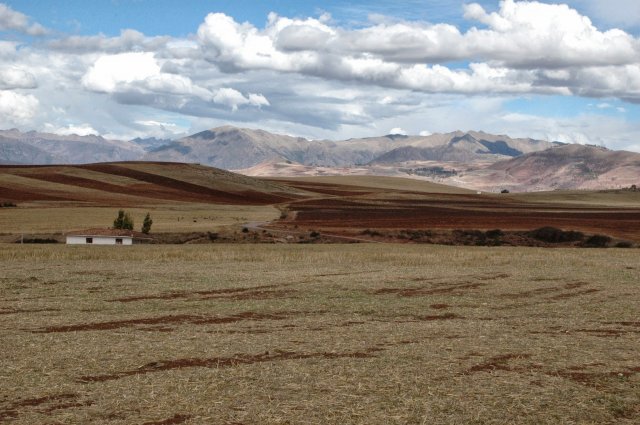 Le 20 septembre, nous prenons un bus local pour aller à Urubamba, notre seconde étape dans la vallée sacrée. Le bus est bondé et nous sommes debout, compressés, jusqu'à ce que des collégiens en descendent. Nous arrivons en milieu de matinée et cherchons un hôtel pour poser nos sacs. L'après midi, nous prenons un taxi pour aller sur deux lieux historiques recommandés, à quelques km de la ville. Sur les hauteurs de la ville, notre voiture arrive rapidement sur un plateau, à plus de 3000m, parsemé de champs, de cultures et de pâturages. Avec le soleil, l'herbe sèche créée une palette de vert et de jaune qui viennent entourer les sommets enneigés des montagnes aux alentours.