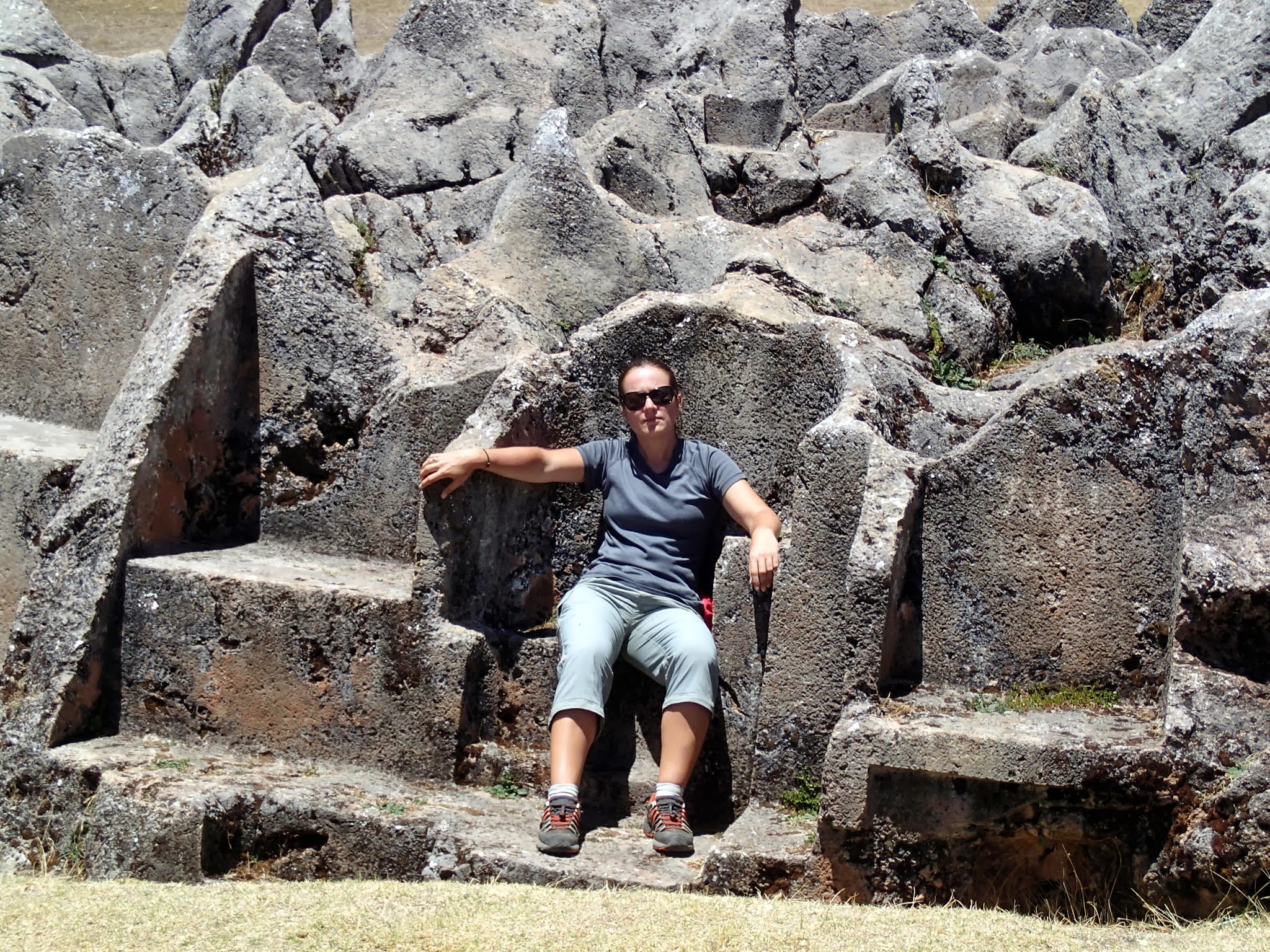 On grimpe sur les hauteurs de la ville, on passe par une belle église et on arrive sur le site Inca de SacsayHuaman. Il est impressionnant par son étendue, sa vue imprenable sur la ville et la taille de ses pierres, la plus grosse pèse plus de 450 tonnes (elle mesure 9m de haut, 5 de large et 4 de profondeur). Toutes ses pierres sont parfaitement assemblées les unes dans les autres. Mais le mystère reste complet quand aux moyens utilisés pour les monter jusque là-haut.